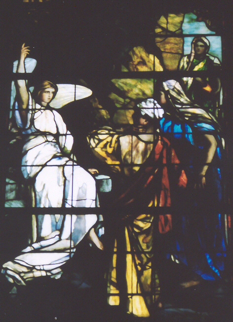 Although it may have been a beautiful spring morning, the women's hearts were not light. The teacher they had loved and honored as the Messiah was dead. The disciples were still hidden indoors, heartbroken over Jesus' death and in fear for their lives. On top of everything else, the women worried that they would not be able to perform this last act of love, the anointing of their dead master. The tomb was shut with a large stone which they themselves could not move. And it did not seem likely that the Roman guards, sent to the tomb to keep Jesus' disciples away, were going to help them. It must have seemed to the women that the forces of evil had won a terrible victory.