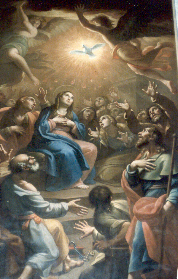 So the apostles gathered with the other followers of Jesus and stayed indoors for nine days, praying constantly. Mary, the Mother of Jesus, was with them too. They chose a new apostle to replace Judas: Matthias was his name. During that time they prayed for the coming of the Holy Spirit. On the tenth day, the sound of a roaring wind filled the house. Tongues as of fire appeared and came to rest upon their heads. The Holy Spirit had come. The apostles lost all fear of punishment and death. Their one burning desire was to proclaim the Good News. They rushed out of the house, and found a ready-made audience: the people of Jerusalem had heard the roar of wind coming from the house and had gathered there to see what was going on. The apostles began preaching, and those listening were amazed. Many of them were Jews from foreign lands, visiting Jerusalem for the feast of Pentecost. Yet each of them heard the apostles preach in his own language: Greek, Latin, Arabic, and more. This gift of tongues was given to the apostles by the Holy Spirit.