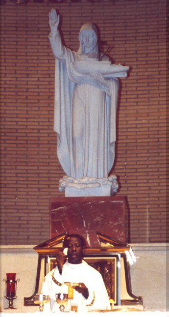Close to Communion now, we repeat the words of a Roman Centurion who once asked Jesus to save one of his servants from death. The Centurion entreated Jesus not to bother coming to his house, since he did not consider himself worthy to receive Jesus, but simply to give the word and his servant would be cured. Jesus marveled at this man's faith and granted his request. Now we, too, say as the Centurion did: "Lord, I am not worthy to receive you, but only say the word and I shall be healed." Then the priest takes Communion, and the Communion Antiphon is recited or sung.