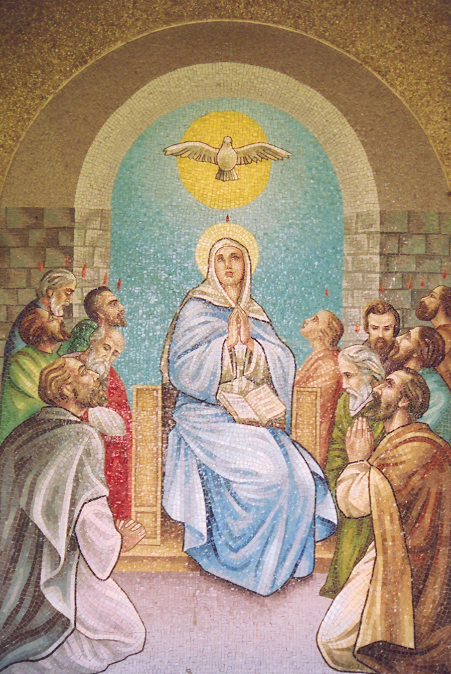 After Jesus returned to the Father, the apostles and other disciples of Jesus spent nine days with Mary, the Mother of Jesus, in prayer, asking God to send the gift of the Holy Spirit. On Pentecost Sunday the promise was fulfilled as Saint Luke tells us: When the day of Pentecost came it found them gathered in one place. Suddenly from up in the sky there came a noise like a strong, driving wind which was heard all through the house where they were seated. Tongues as of fire appeared which parted and came to rest on each of them. All were filled with the Holy Spirit. They began to express themselves in foreign tongues and make bold proclamations as the Spirit prompted them (Acts 2:1-4).