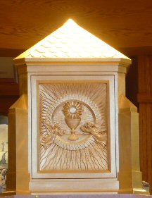 The Priest Approaches and Kisses the Altar: The altar is a symbol of Christ. In it are cut five crosses to recall the five wounds of Christ. The altar also represents the Church and has embedded in it the relics of her saints. The priest comes to the altar to celebrate the Sacrifice in the Church's name. Because of the glory surrounding the altar upon which the divine Sacrifice will be made, the kiss of the priest unites the Church to Christ, its Redeemer.