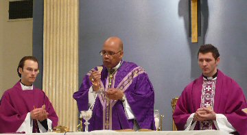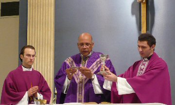 Priest: Deliver us, Lord, we pray, from every evil, graciously grant peace in our days, that, by the help of your mercy, we may be always free from sin and safe from all distress, as we await the blessed hope and the coming of our Savior, Jesus Christ.