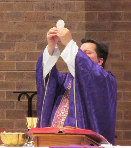 Priest and All: Lord, I am not worthy that you should enter under my roof, but only say the world and my soul shall be healed.