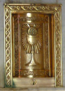 The Priest Approaches and Kisses the Altar: The altar is a symbol of Christ. In it are cut five crosses to recall the five wounds of Christ. The altar also represents the Church and has embedded in it the relics of her saints. The priest comes to the altar to celebrate the Sacrifice in the Church's name. Because of the glory surrounding the altar upon which the divine Sacrifice will be made, the kiss of the priest unites the Church to Christ, its Redeemer.