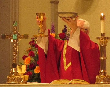 Red priestly vestments symbolize the appearance and indwelling of the Holy