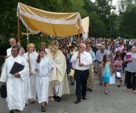 Priest: Whoever eats my flesh and drinks my blood remains in me and I in him, says the Lord.