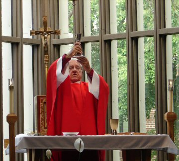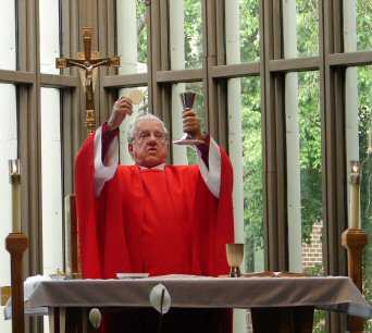 Red priestly vestments symbolize a life of sacrifice