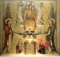 The Priest Approaches and Kisses the Altar: The altar is a symbol of Christ. In it are cut five crosses to recall the five wounds of Christ. The altar also represents the Church and has embedded in it the relics of her saints. The priest comes to the altar to celebrate the Sacrifice in the Church's name. Because of the glory surrounding the altar upon which the divine Sacrifice will be made, the kiss of the priest unites the Church to Christ, its Redeemer.